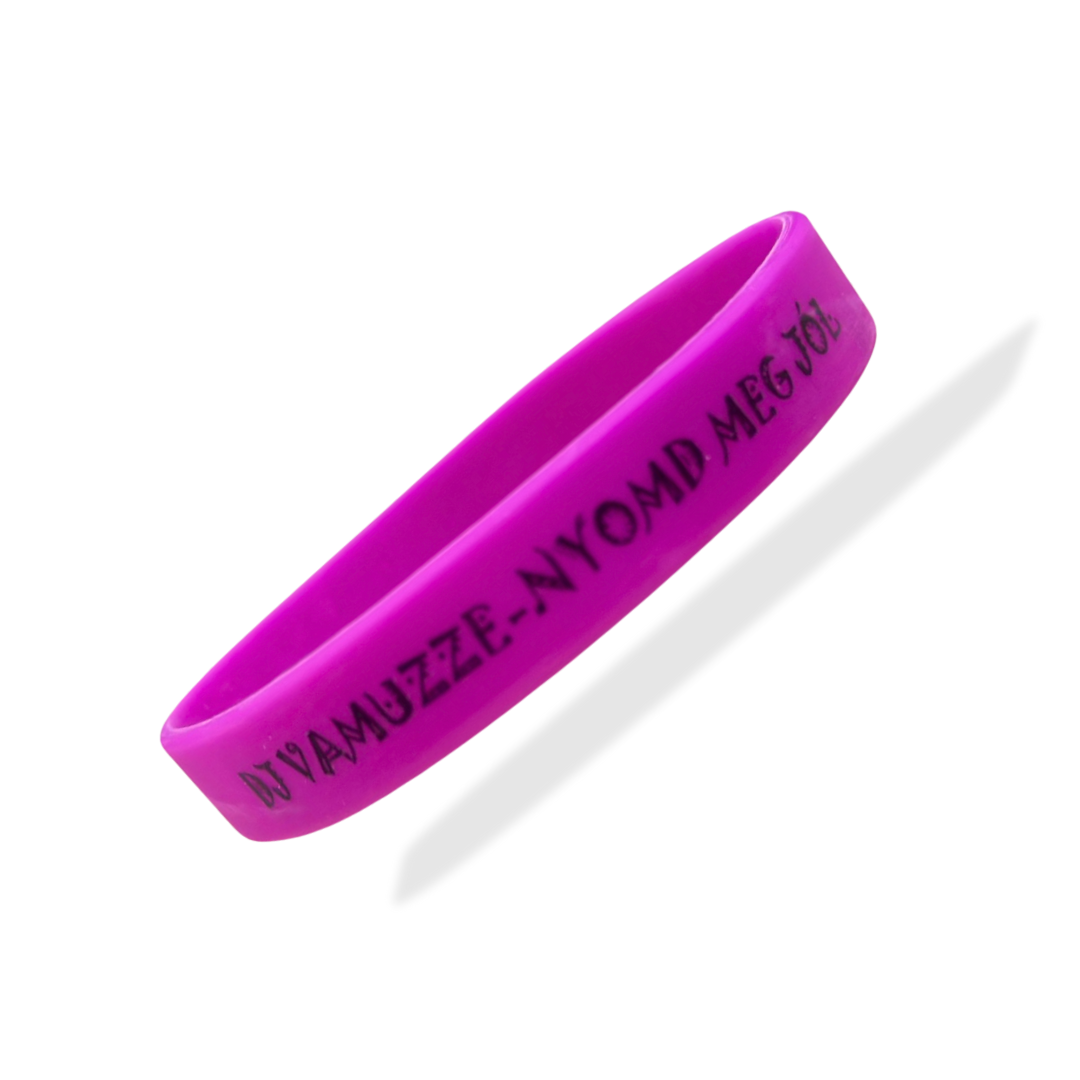 Egyedi Szilikon karkötő DJ Vamuzze-Nyomd meg jól felirattal. Pink színben, fekete írással.